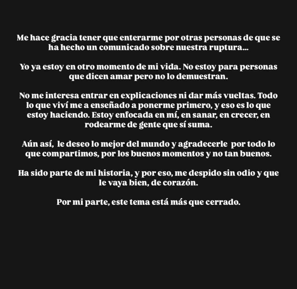 Con estas palabras, deja claro que ha cerrado el capítulo. No solo ha terminado una relación: ha comenzado una etapa de amor propio, autocuidado y cero tolerancia a lo que no le aporta.