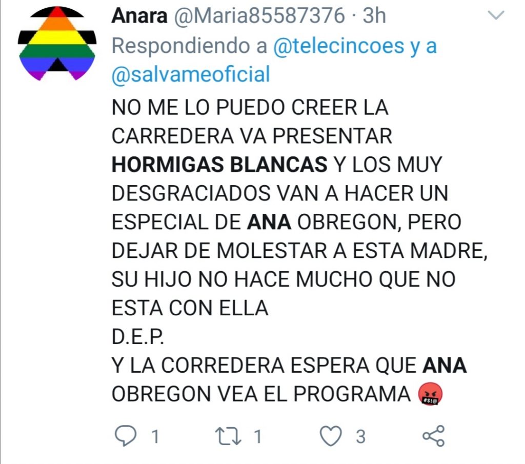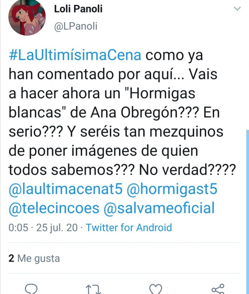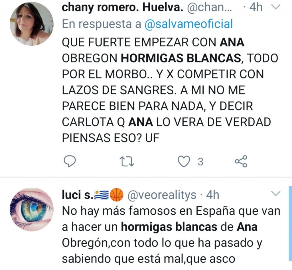 Que la primera edición de esta nuevo hormigas blancas este dedicado a Ana Obregón está causando muchas controversia. Las redes lamentan que esto sea así, y han creado un movimiento en contra del programa, con cientos de comentarios negativos mostrando su descontento, e intentando que Telecinco recapacite con esta decisión.