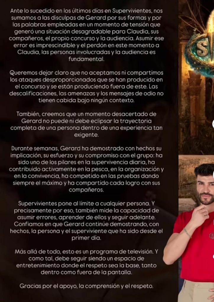 Otro punto clave del comunicado es cuando recuerdan que todo ocurre dentro de un reality, apelando a rebajar la intensidad del juicio público.