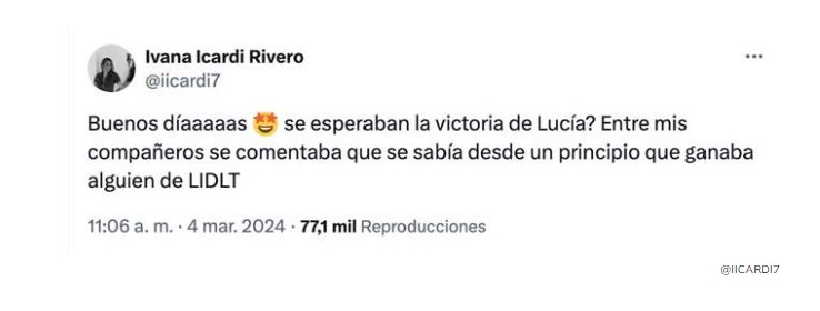 Ivana Icardi ha lanzado un comentario a través de X (antiguo Twitter) que no ha dejado a nadie indiferente. La exconcursante de ‘GH DÚO’ ha hecho una pregunta a sus seguidores que ha acompañado de una confesión. “¿Se esperaban la victoria de Lucía? Entre mis compañeros se comentaba que se sabía desde un principio que ganaba alguien de ‘La isla de las tentaciones’”, ha escrito sobre cómo entre los compañeros de la ganadora se comentaba desde un principio que alguien relacionado con ese otro programa vencería. Y así ha sido.