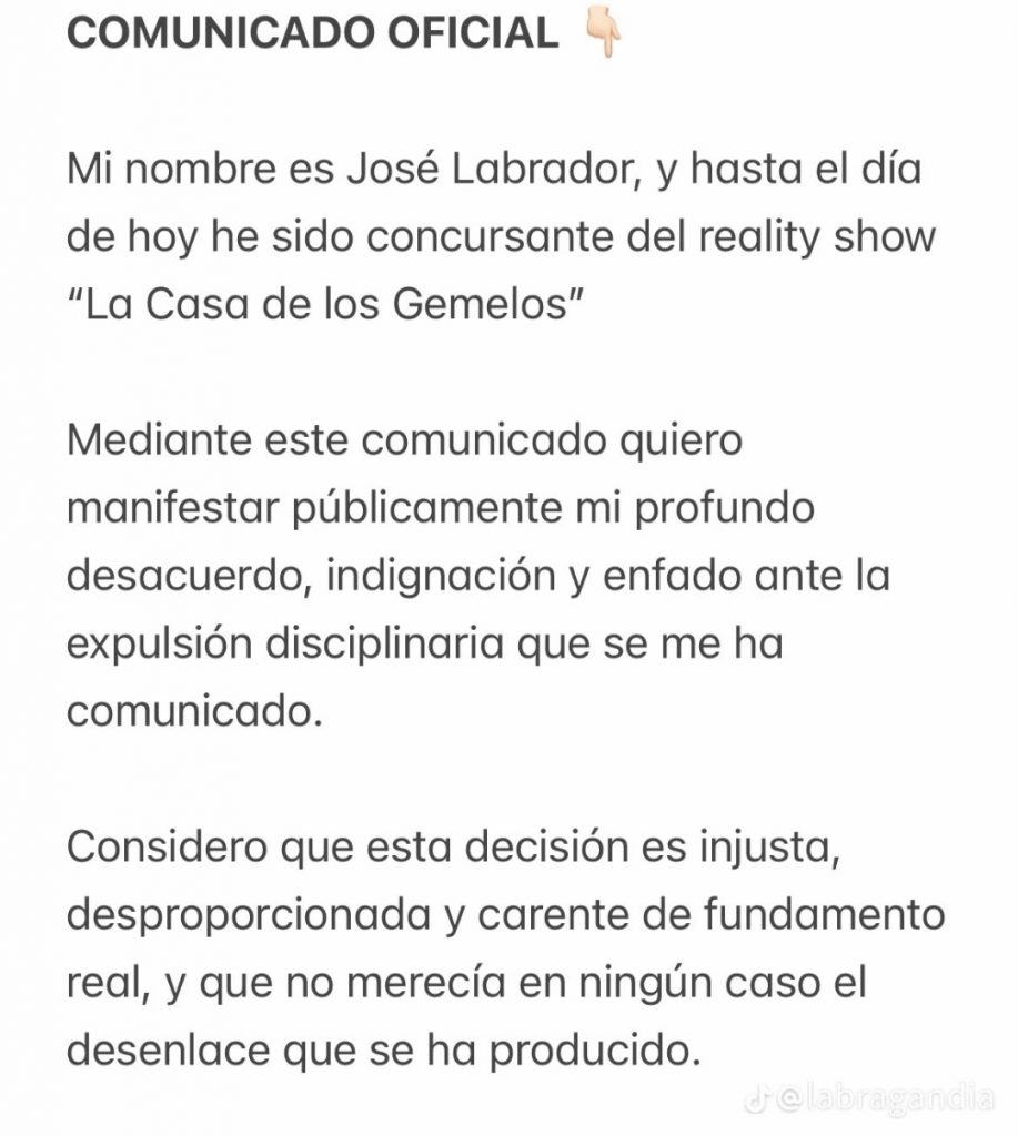 Labrador amenaza con llevar a los tribunales a La casa de los gemelos tras su expulsión | La isla de las tentaciones 9