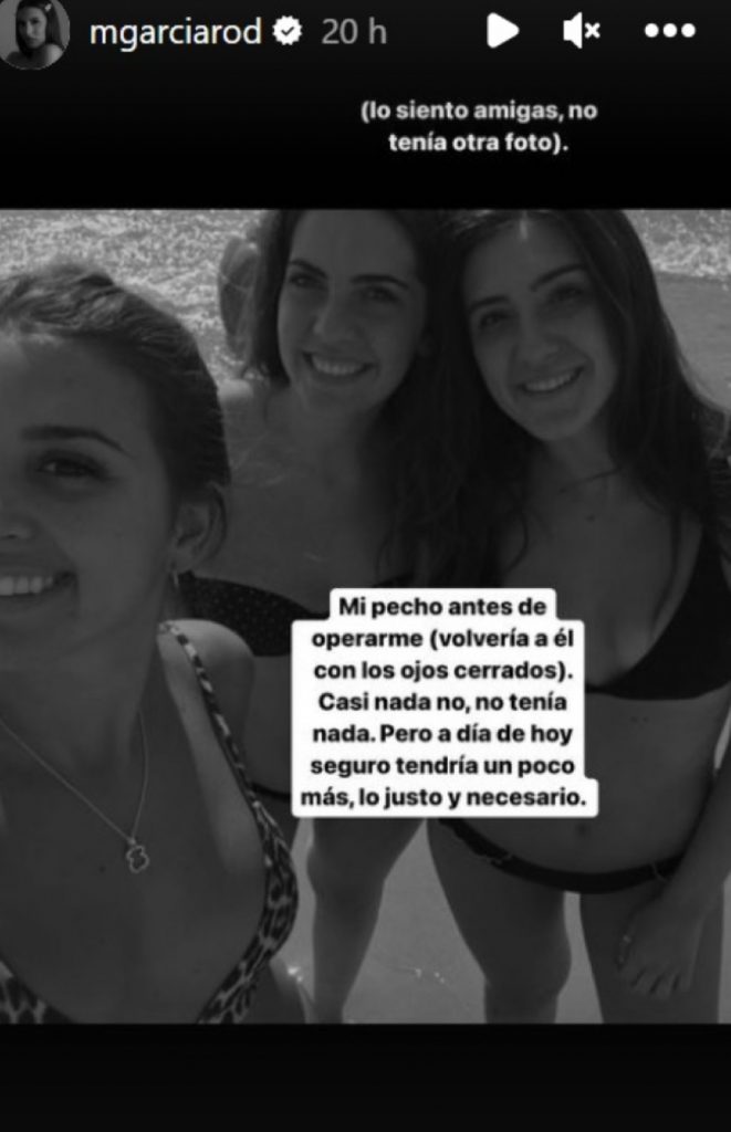 Y para concluir, Marina García también ha subido una foto de cómo era su pecho antes de ponerse más talla: «No tenía nada. A día de hoy seguro que tendría un poco más, lo justo y necesario». Por lo que según ella «volvería a él con los ojos cerrados«.