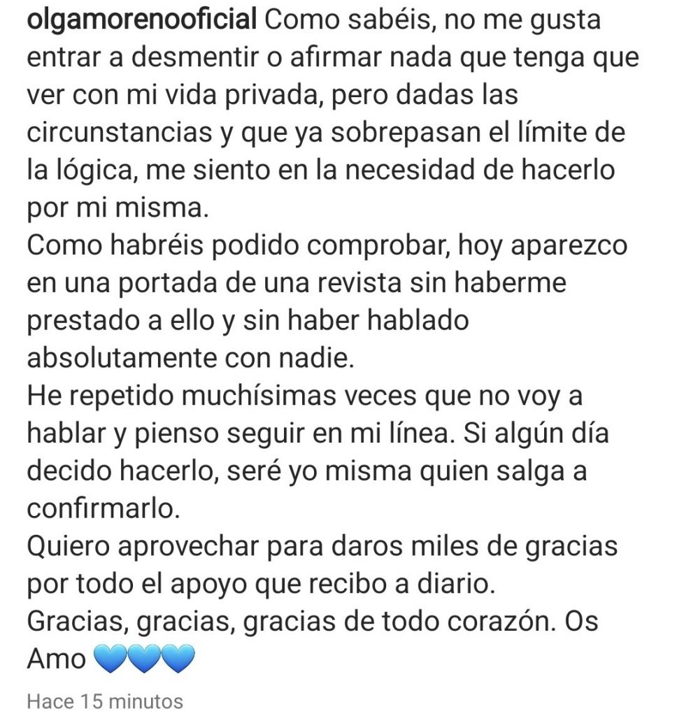 Olga Moreno se ha pronunciado de forma sorprendente en sus redes sobre la portada de revista Lecturas, desmintiendo su contenido, y contando que en ningún momento se han puesto en contacto con ella: