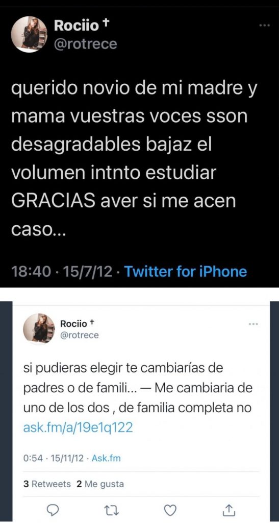 Lo que parecía olvidado ha regresado con fuerza: varios tuits y mensajes publicados por Rocío Flores cuando era adolescente, en los que hablaba auténticas barbaridades de su madre. Frases como “#teodiomamá”, “querida mamá, no te aguanto ni un minuto más” o incluso un durísimo “muérete en serio, ya” se han convertido en pruebas irrefutables de que sí existió un historial de reproches públicos contra Rocío Carrasco.