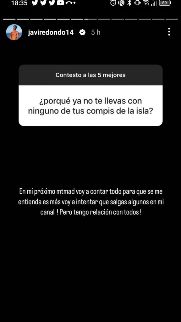 Por todos esto, las redes de Javi se han llenado de mensajes y comentarios intentando sacar información sobre lo que ha pasado entre Javi y sus ex compañeros. El ex concursante ha echado balones fuera respondido de esta forma a la pregunta de un seguidor: