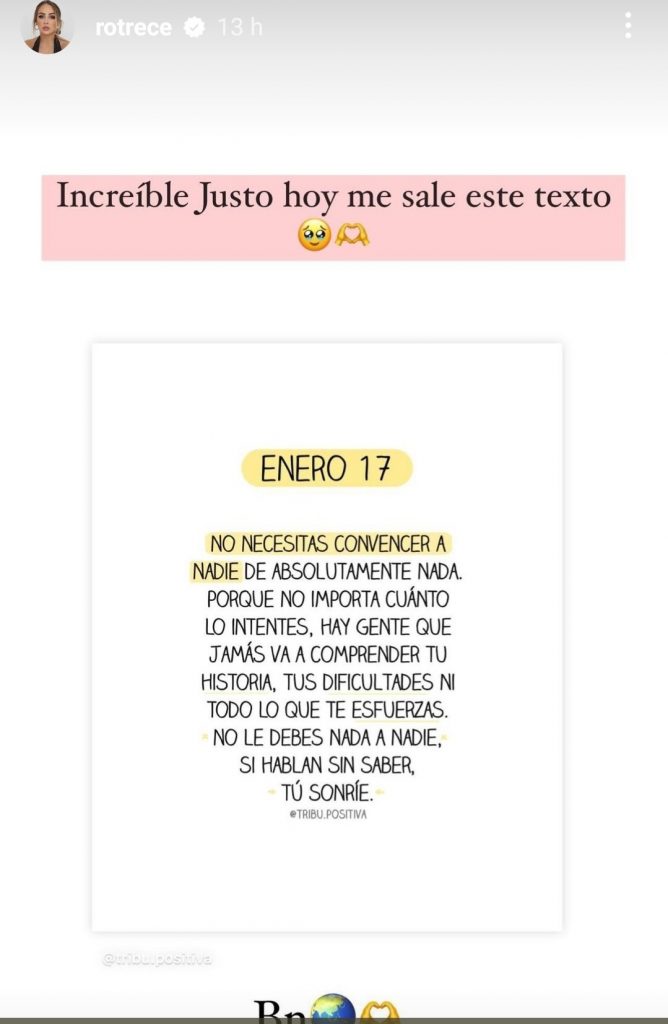 Lo último que puede entorpecer más una posible reconciliación entre Olga y Rocío Flores, es un mensaje que ha compartido está última, donde en uno de los fragmentos dice que no le debe nada a nadie. Texto que las redes creen que es un nuevo dardo para Olga Moreno. Puedes verlo a continuación: