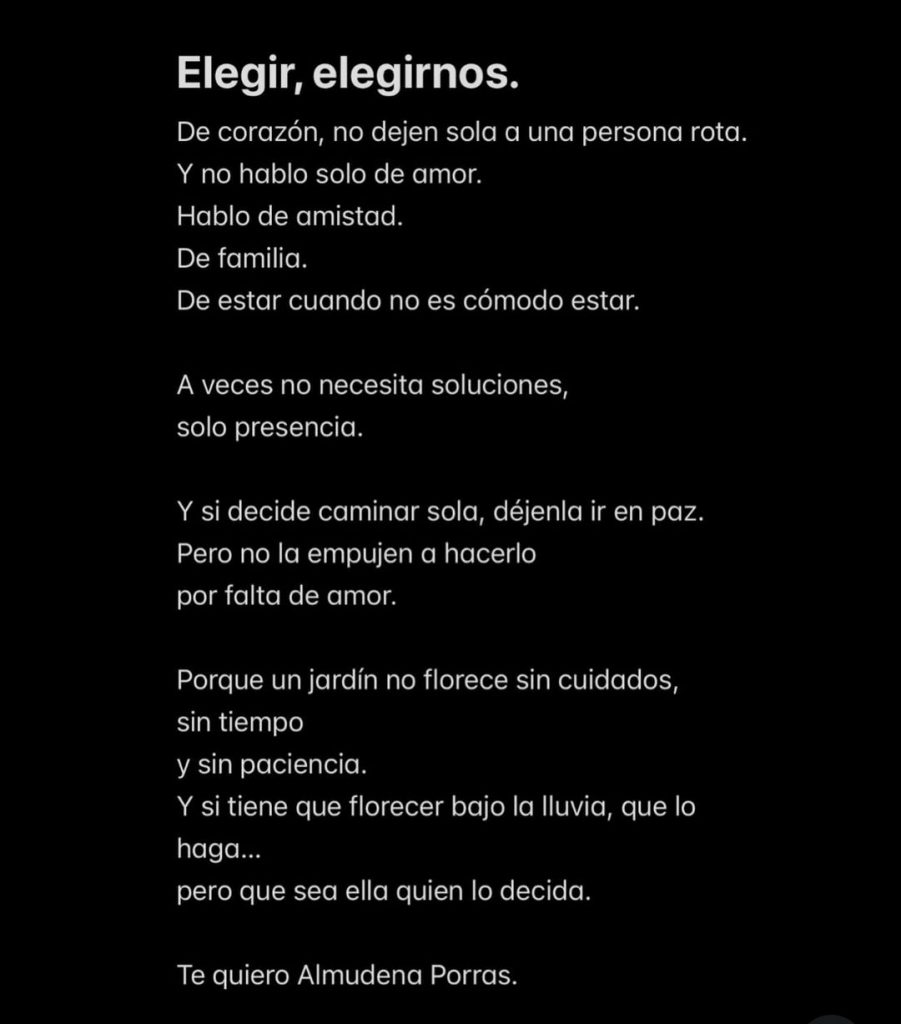 En su publicación de Instagram, Borja compartió un álbum de fotos íntimas de estos meses juntos —pijamas a conjunto, celebraciones de cumpleaños, escapadas a Tenerife— y remató con una nota manuscrita que ha emocionado a miles de seguidores. El texto, titulado “Elegir, elegirnos”, es un auténtico manifiesto sobre el amor verdadero, no solo romántico, sino también en la amistad, la familia y las relaciones humanas en general.