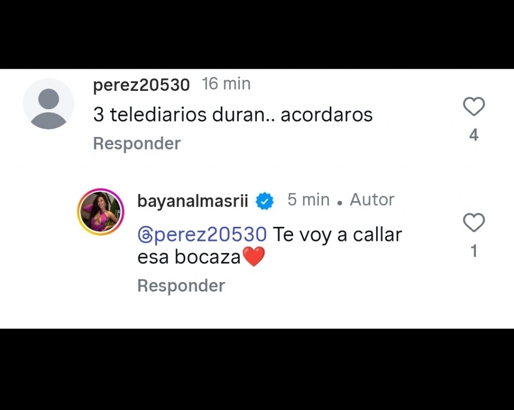 Lejos de dejarlo pasar, Bayan decidió responder. Y lo hizo sin rodeos ni filtros: “Te voy a callar esa bocaza ❤️”