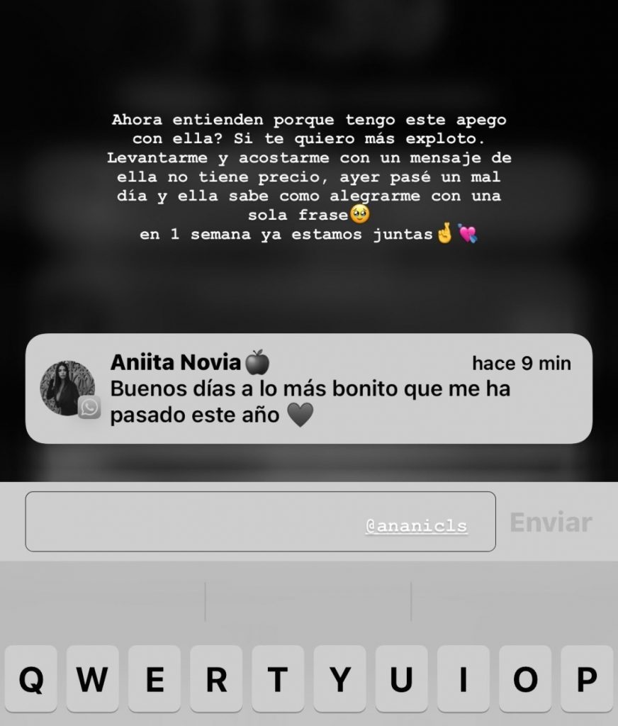 Tania que es muy activa en redes ha colgado un mensaje que ha recibido de Ana, una de sus mejores amigas en en el reality, gracias a la captura podemos vor como debido a su afinidad, Tania tiene guardada a su móvil como «Aniita novia«. Esta es la publicacion:
